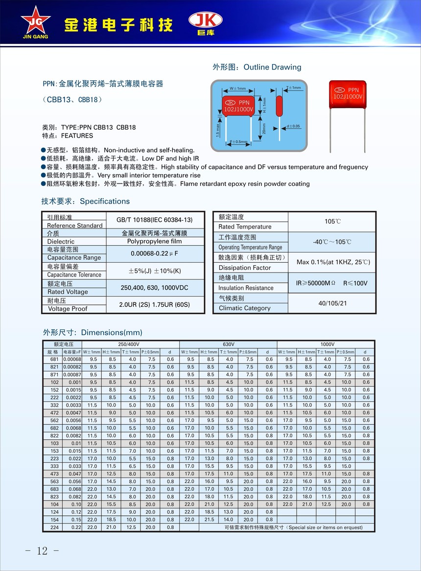 CBB13-222J1000V-P10-Zhongshan Jingang Electronic Technology Co., Ltd.