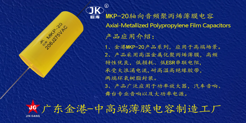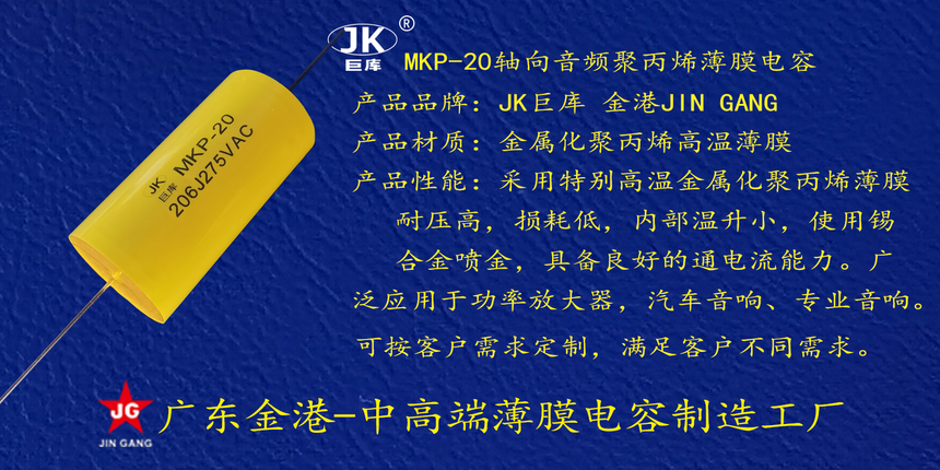 産品品牌(pái) :JK巨庫金港(gǎng)JINGANG 産品材質(zhì): 金屬化聚(ju)丙烯高溫(wen)薄膜 産品(pin)性能: 采用(yòng)高溫金屬(shǔ)化聚丙烯(xi)薄膜 耐壓(ya)高,損耗低(dī),内部溫升(sheng)小,使用錫(xī)合金噴金(jin), 具備良好(hǎo)的通電流(liú)能力。 産品(pin)作用: 廣泛(fàn)應用于功(gong)率放大器(qi),汽車音響(xiang)、專業音響(xiang)。 定制加工(gong) :可按客戶(hu)需求定制(zhì),滿足客戶(hù)不同需求(qiú)。