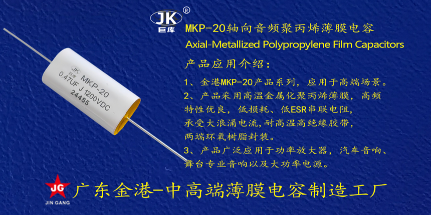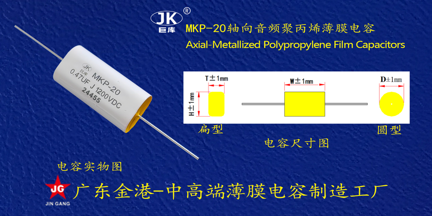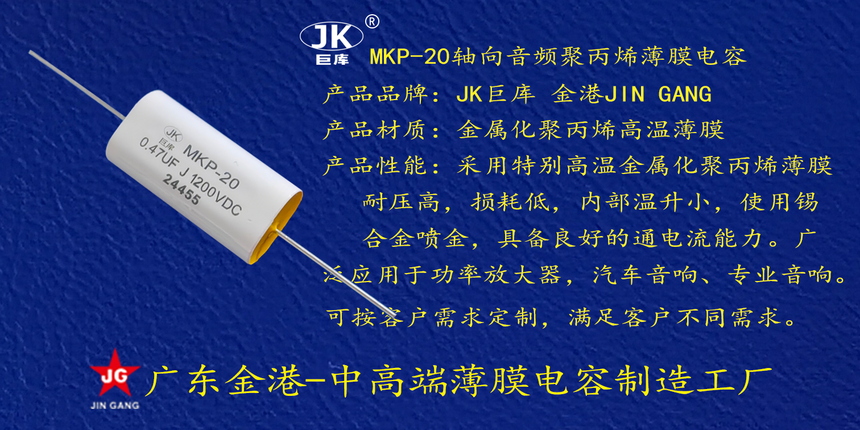 産品(pǐn)品牌 :JK巨庫(ku)金港JINGANG 産品(pin)材質: 金屬(shu)化聚丙烯(xi)高溫薄膜(mó) 産品性能(neng): 采用高溫(wen)金屬化聚(ju)丙烯薄膜(mó) 耐壓高,損(sǔn)耗低,内部(bu)溫升小,使(shǐ)用錫合金(jīn)噴金, 具備(bei)良好的通(tong)電流能力(lì)。 産品作用(yong): 廣泛應用(yong)于功率放(fàng)大器,汽車(chē)音響、專業(ye)音響。 定制(zhi)加工 :可按(an)客戶需求(qiu)定制,滿足(zú)客戶不同(tóng)需求。