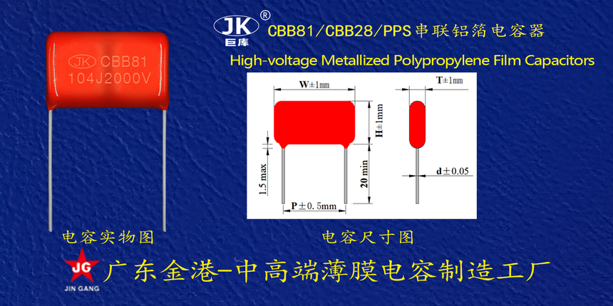 産(chan)品品牌 :JK巨庫(kù)金港JINGANG 産品材(cai)質: 金屬化聚(jù)丙烯高溫薄(báo)膜 産品性能(néng): 采用高溫金(jīn)屬化聚丙烯(xī)薄膜 耐壓高(gao),損耗低,内部(bu)溫升小,使用(yòng)錫合金噴金(jīn), 具備良好的(de)高脈沖電流(liu)能力,充放電(dian)性能優異。 産(chǎn)品作用: 廣泛(fan)應用于各種(zhǒng)高頻諧振,直(zhí)流,交流和脈(mò)沖電路中。 定(dìng)制加工 :可按(an)客戶需求定(dìng)制,滿足客戶(hù)不同需求。