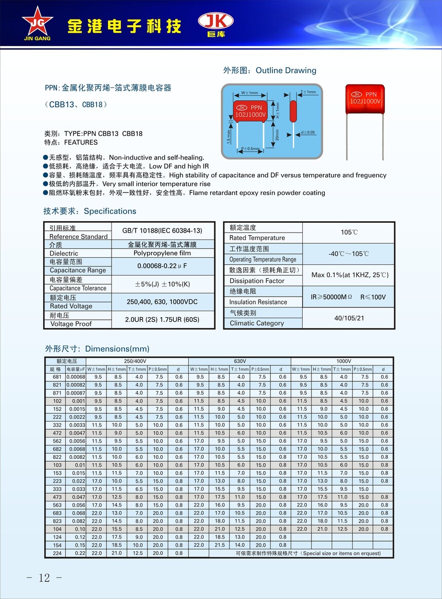 産品(pin)品牌 :JK巨庫金港(gang)JINGANG 産品材質: 鋁箔(bo)聚丙烯膜電容(róng)器 産品性能: 采(cǎi)用高溫聚丙烯(xi)膜,鋁箔電極耐(nai)壓高, 損耗低,i高(gāo)頻條件下内部(bu)溫升小錫合金(jin)噴金, 具備良好(hao)的耐電流能力(lì)。充放電性能優(yōu)異。 産品作用: 廣(guǎng)泛應用于各種(zhǒng)直流,低脈沖電(dian)路,等場合。 定制(zhi)加工 :可按客戶(hù)需求定制,滿足(zú)客戶不同需求(qiú)。