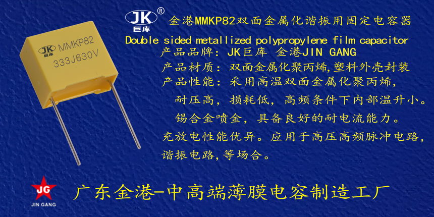 産品品牌 :JK巨庫(ku)金港JINGANG 産品材質: 雙(shuang)面金屬化聚丙烯(xī),塑料外殼封裝 産(chǎn)品性能: 采用高溫(wen)雙面化聚丙烯,耐(nai)壓高, 損耗低,高頻(pin)條件下内部溫升(sheng)小。錫合金噴金, 具(jù)備良好的耐電流(liú)能力。充放電性能(neng)優異。 産品作用: 應(yīng)用于高壓高頻脈(mò)沖電路,諧振電路(lu),等場合。