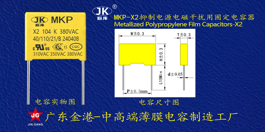 産品(pin)品牌 :JK巨庫金港JINGANG 産(chǎn)品材質: 金屬化聚(ju)丙烯高溫薄膜 産(chǎn)品性能: 采用高溫(wen)金屬化聚丙烯薄(bao)膜 耐壓高,損耗低(dī),内部溫升小,使用(yong)錫合金噴金, 具備(bèi)良好的通電流能(néng)力。 産品作用: 廣泛(fàn)應用于各種交流(liu)跨接,抗幹擾電路(lu)場景。 定制加工 :可(kě)按客戶需求定制(zhi),滿足客戶不同需(xu)求。